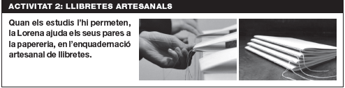 La mare enquaderna amb espirals de filferro llibretes de dues mides diferents. Les