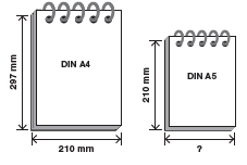 dimensions d’una llibreta DIN A4 són 210 mm d’amplada i 297 mm de llargada. La llargada